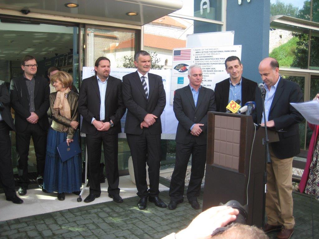 On 12 March 2013, Mr. Dorijan Maršič, ITF Director attended the official handover ceremony of demining certificate following the completion of demining activities on demining project funded by National Park Krka. The ceremony was attended by H.E. Mr. Kenneth Merten, US ambassador to Croatia, Mr. Tonči Restović-NP Krka director, Mr. Dražen Jakopec-director of Croatian Mine Action Center - CROMAC, prof.dr.sc. Dijana Pleština- Director of the Office for Demining of the Republic of Croatia and Mr. Goran Pauk-Šibenik Knin County prefect.
