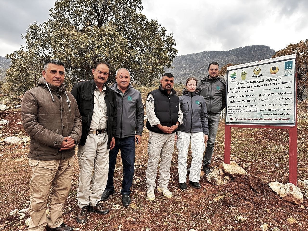From 7–12 December 2025, our team travelled to the Kurdistan Region of Iraq for a monitoring visit, combined with a donor visit, to follow humanitarian mine action activities implemented in partnership with the Iraqi Kurdistan Mine Action Agency (IKMAA) and supported by the Slovenian Ministry of Foreign and European Affairs (Slovenia Aid & Partnerships). Being on the ground allowed us not only to monitor progress, but also to speak directly with deminers, authorities, and landowners, and to better understand what mine clearance means for everyday life.