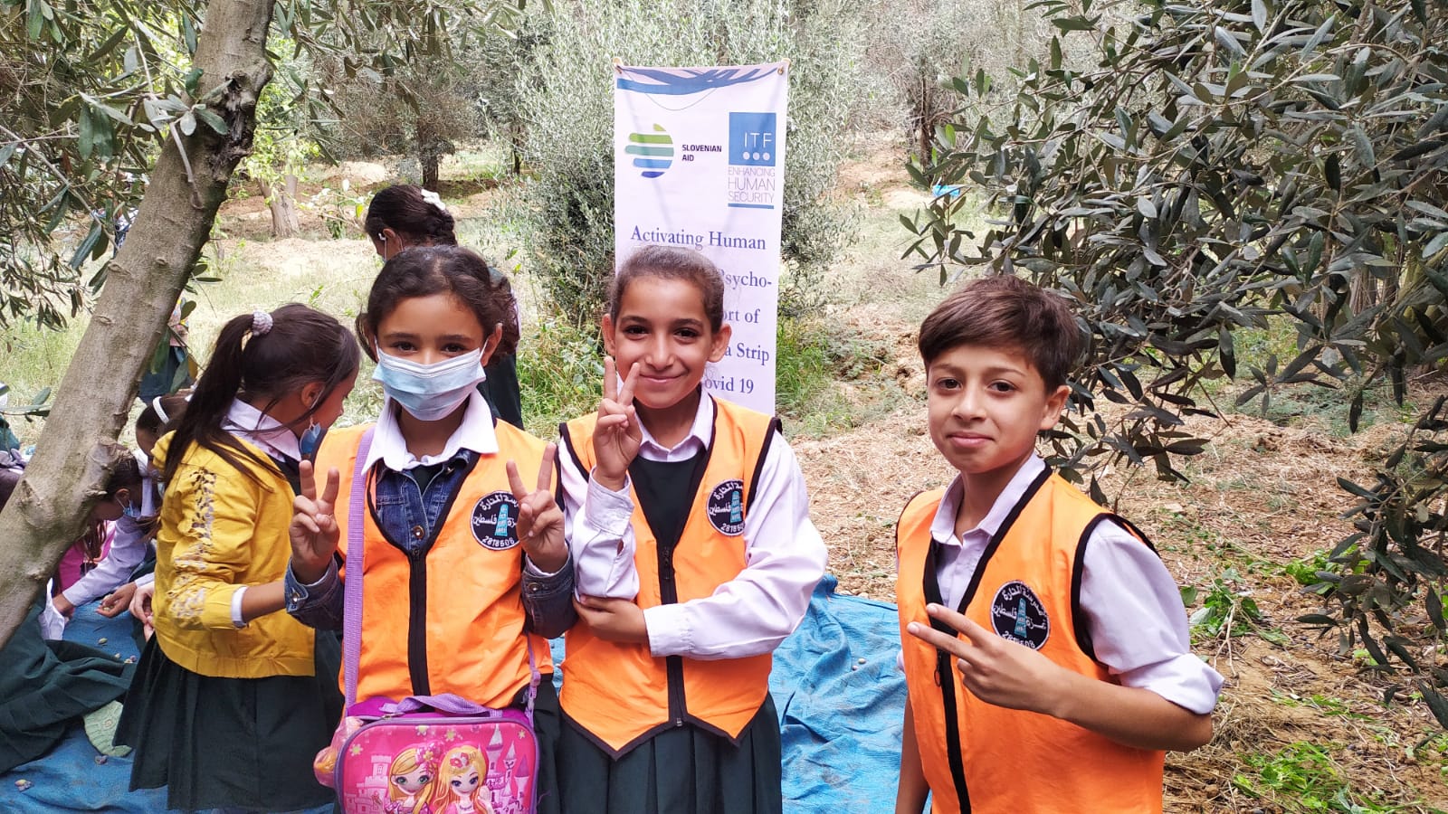 Hence, the aim of the project we are implementing together with local partner non-governmental organization Mental Health Promotion and Capacity Building Center is to develop organized community and school-based youth voluntary work, which is a way to motivate them to actively participate in their communities, teach them civic responsibility and to encourage their lifelong engagement in society. To achieve that, Palestinian children implemented different voluntary activities in their schools. One school visited an Elderly Nursing Home to exchange presents, the other visited an Orphanage in Gaza and gifted toys to children, while another school visited an olive grove to help with the harvest. Each volunteer also helps their schoolmates who have learning difficulties, each volunteer participating in the project helps at least one student. To show that school is their second home, one school organized a clean-up campaign within their school and even planted some trees, while another school provided their library with books that are no longer needed.