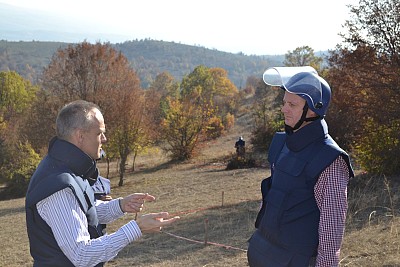 Military Attache Lieutenant Colonel Ulrich Timmermann, German Embassy Serbia visited demining site Turijsko Brdo 1 in Municipality Bujanovac in Southern Serbia on 13 November 2012. ITF Project Manager Mr Roman Turšič, MAC Serbia representative Mr Ilija St