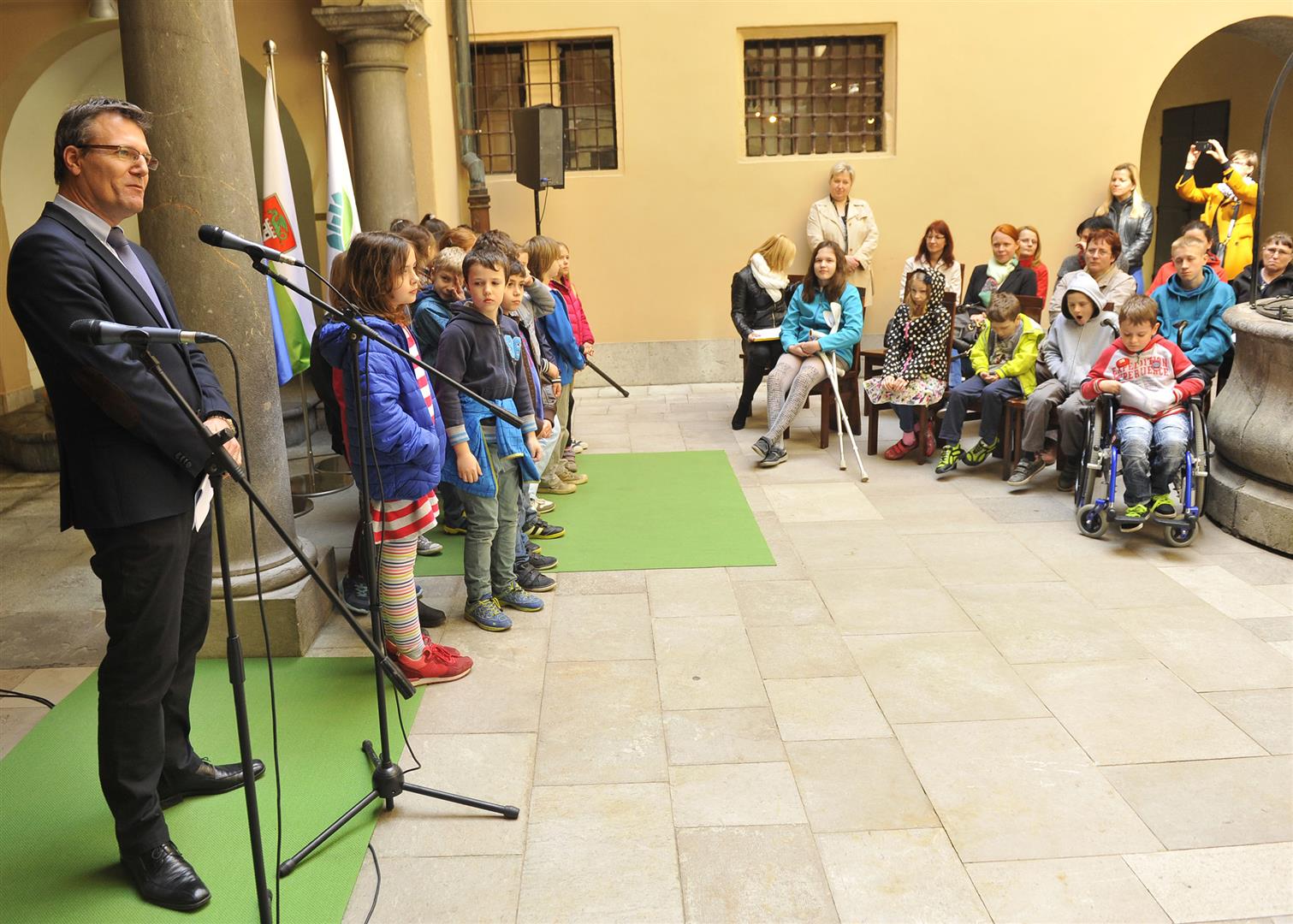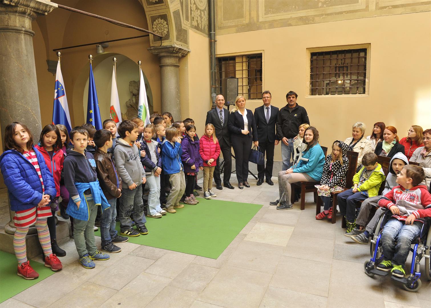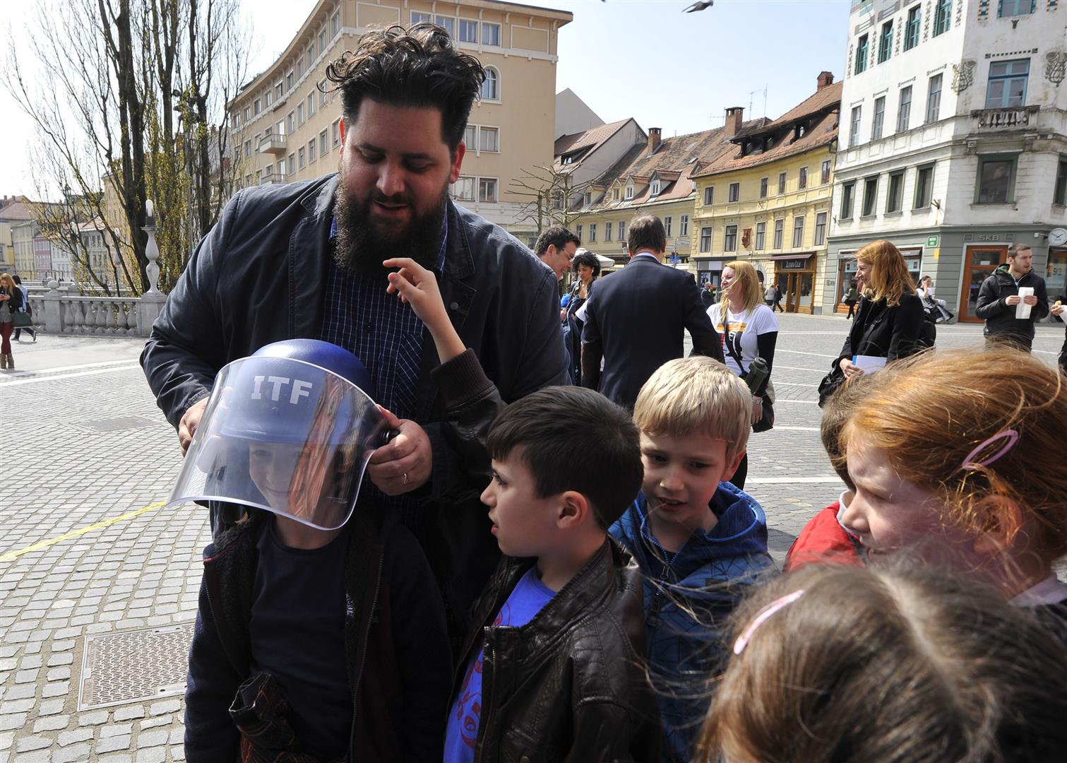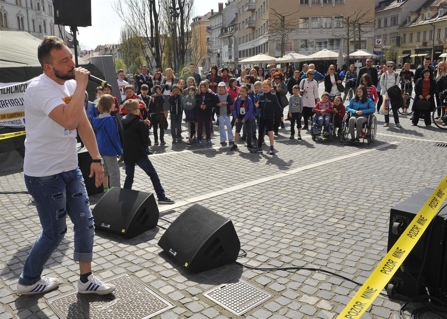 To reach out to the wider public on 4 April ITF organized a public event at the Prešern square in the center of Ljubljana, with the performance of Slovenian rapper Zlatko and comedian Boštjan Gorenc – Pižama. Passersby were able to take a photo in front of the mock minefield and explore the open-air exhibition on mine action and the work of ITF in the field. On the same day an exhibition titled “Freedom and Security through the Eyes of Children from Slovenia and Gaza” in the Ljubljana Town hall was opened. The exhibition displayed artworks jointly created by children from two very different places – peaceful Slovenia and war-torn Gaza – but essentially from the same world.
