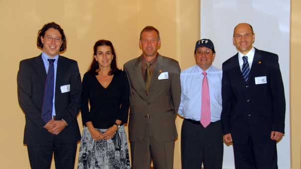 ITF will prepare review of the visit and study the possibility of programs on the field of mine victim’s rehabilitation as well as on the field of mine awareness. The step forward for ITF would take the interest of donators to support those programs in Colombia. (Picture: Mr. Iztok Hocevar, ITF-Head of Department for International Relations, Maria Victoria Garcia de Santos, wife of Vice President of Colombia, Mr. Goran Gancik, ITF-Director, Dr. Francisco Santos Calderon, Vice President of Colombia and Mr. Robert Cugelj, Institute of Republic of Slovenia for Rehabilitation- Director)