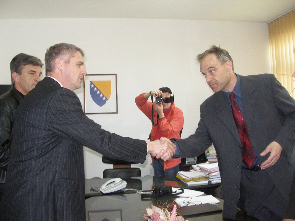 Deputy mayor of Br?ko District Mr. Anto Domi? and Mr. Roman Turši?, Head of ITF Implementation office in BiH signed a Memorandum of Understanding for 700.000,00 KM (357.904,32 EUR). Funds will be used for demining and technical survey activities on priorities earmarked by Br?ko District Government. Most of the priorities are connected with sustainable return and agriculture in Br?ko District. Some of the proposed locations deal with development plans and foreign investments in Br?ko District (investment of company Vindija from Croatia for construction of the sugar factory in Br?ko District).