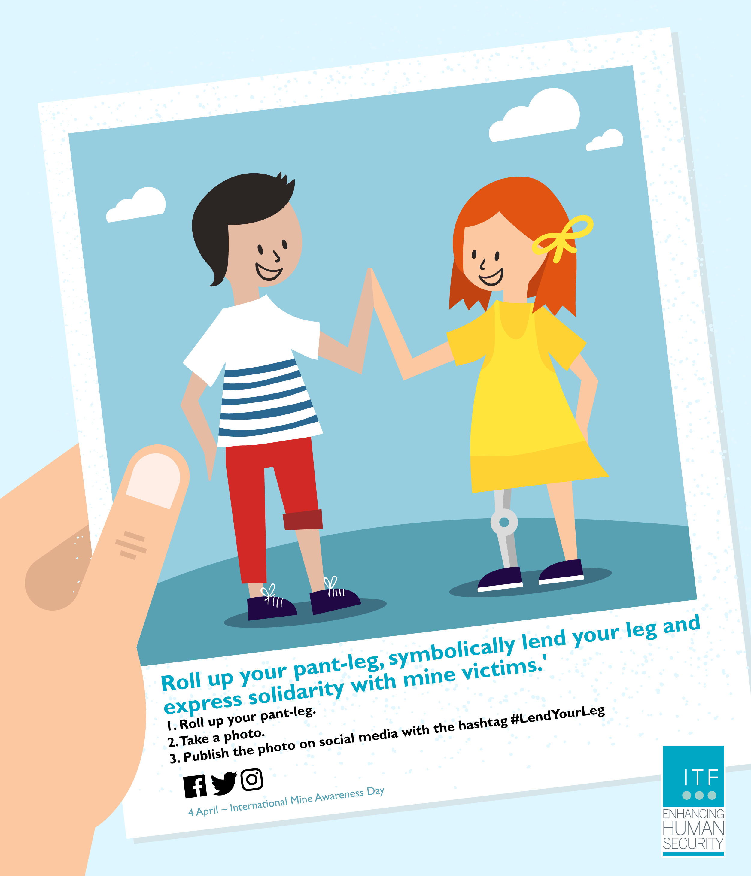 Thus, this year’s Lend Your Leg campaign was even more important and relevant. By rolling our pant-legs, ITF called for action and reimbursed the notion of having a holistic approach within humanitarian mine action. These insidious weapons mark an individual and their family for the rest of their lives. They present a serious threat to the whole society, depriving them of opportunities for development and safer future. This is why rolling up your pant-leg does not only express solidarity with the mine victims, but supports the great cause of achieving a mine free world.