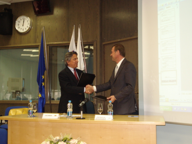 At Ceremony following the meeting Deputy Ambassador of Embassy of Colombia in Vienna Mr. Ciro Alfonso Arevalo Yepes and Director of ITF, Mr. Goran Ga?nik solemnly exchanged signed copies of Memorandum on Cooperation, which defines ways of cooperation on the field of Mine Action with emphasis on Mine Victims Assistance.