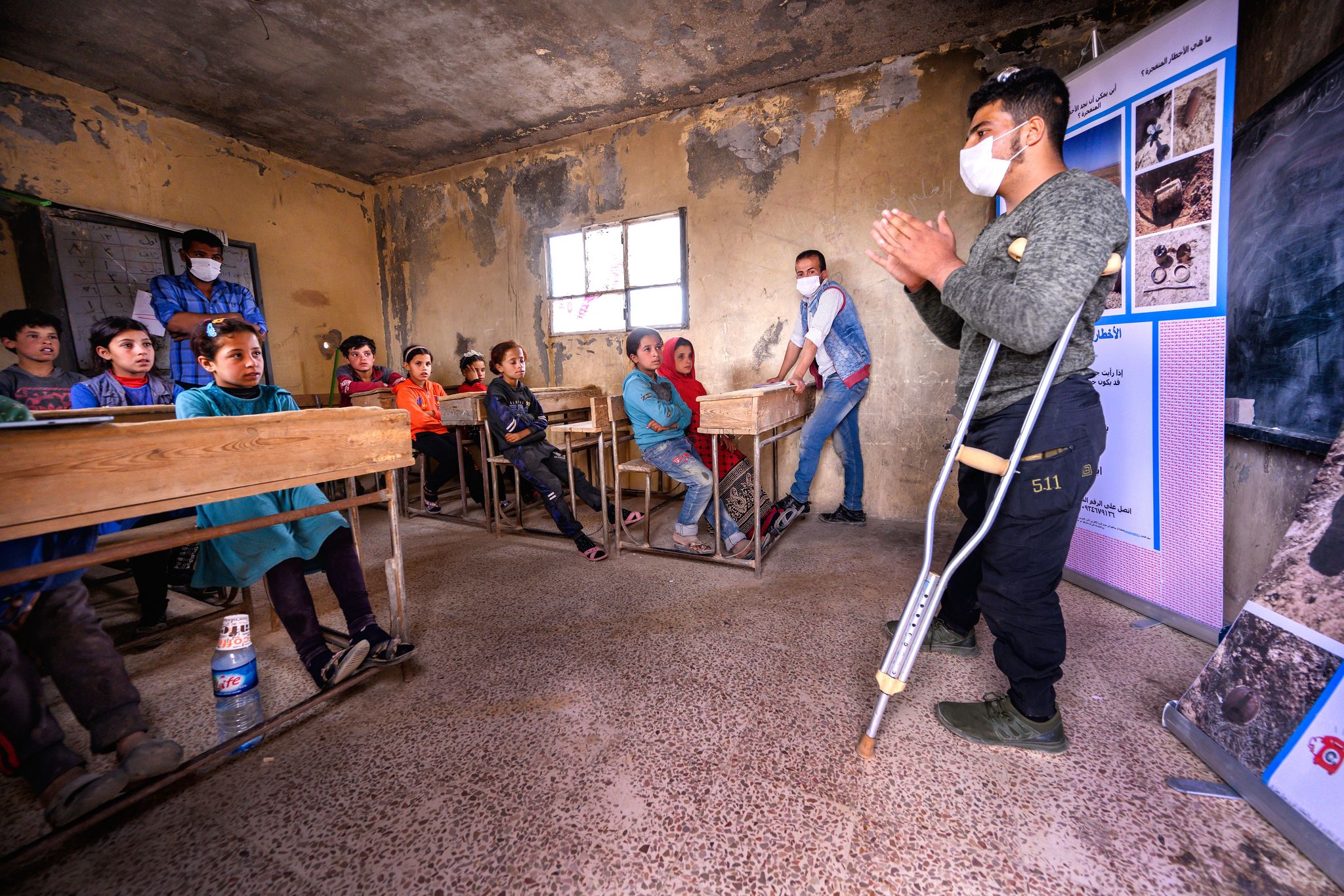 In order to prevent future UXO accidents that can be fatal, adults and children from various at-risk communities, are given the opportunity to participate in the EO risk education sessions provided in different local settings, such as schools, community spaces, in people’s homes or gardens. Particular focus is devoted to children who are most at-risk from accidents, so that they are able to safely move around the village. Other social groups are equally included with messaging adjusted to the specific target audience each time. The goal is for all the participants to gain a better understanding of the dangers present and safe behaviour, as well as to eventually pass on the knowledge about the do’s and don’ts living next to a contaminated area. During the visit, we were able to observe a very interactive session delivered to schoolchildren in a local school.