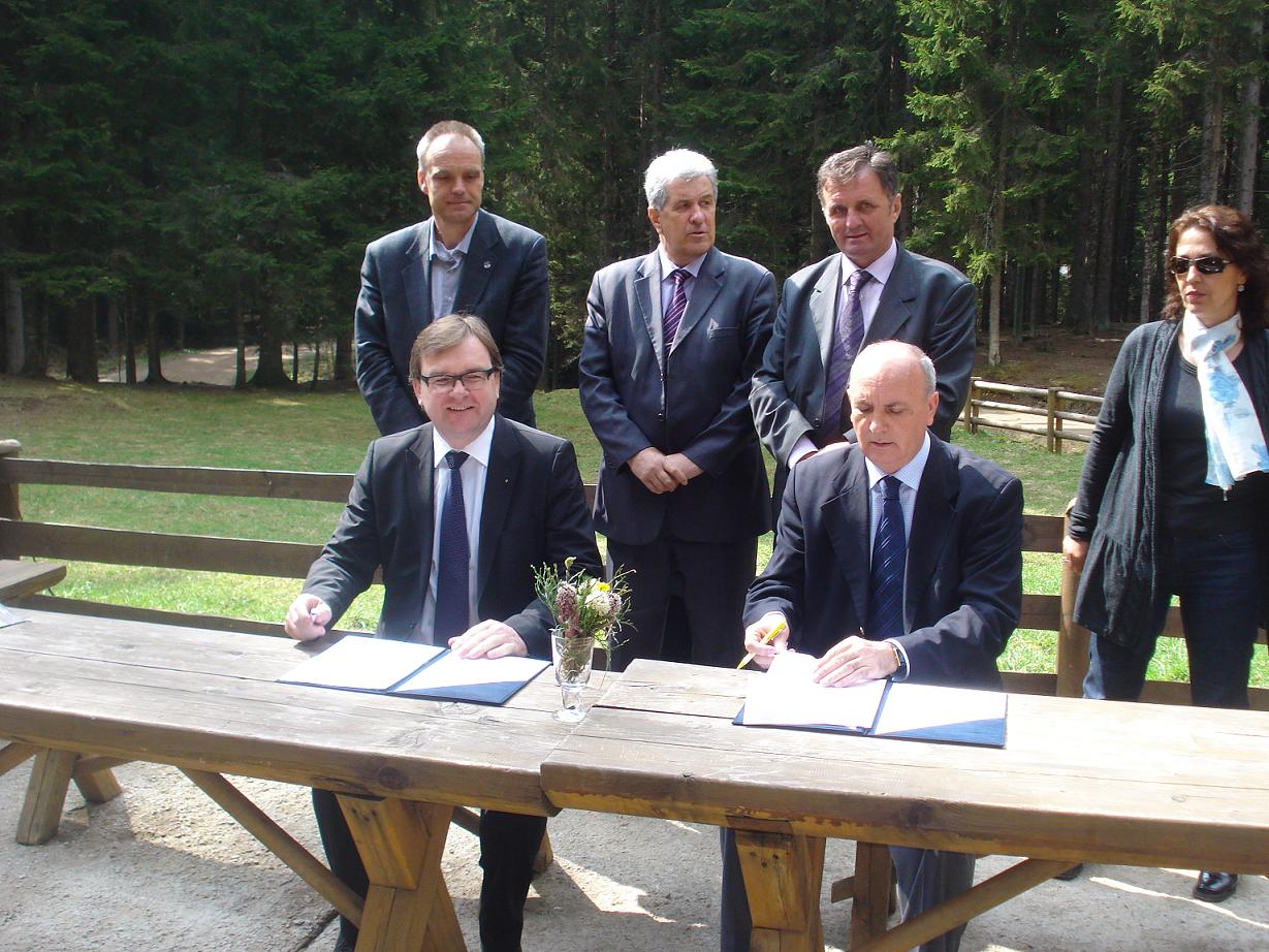 On 20 April 2011, Mr. Dorijan Marši?, ITF Director and Mr. Abid Jusi?, Minister of Urban Planning and Environmental Protection of Canton Sarajevo have signed a Memorandum of Understanding (MoU) for the donation in the amount of 76.693,78 EUR for demining activities in Bosnia and Herzegovina. The donation will be matched with the funds provided by the US Government and will be used for purpose of demining of the location Bijambare Kozlovac 1 in Canton Sarajevo.