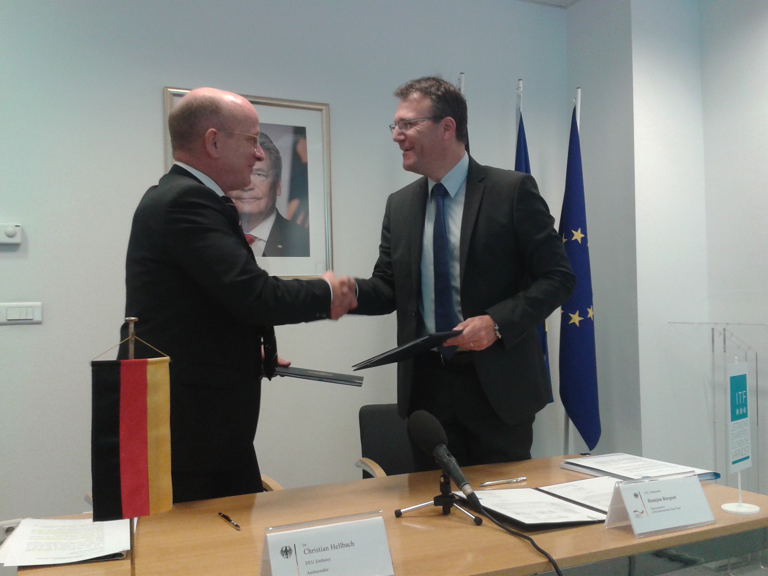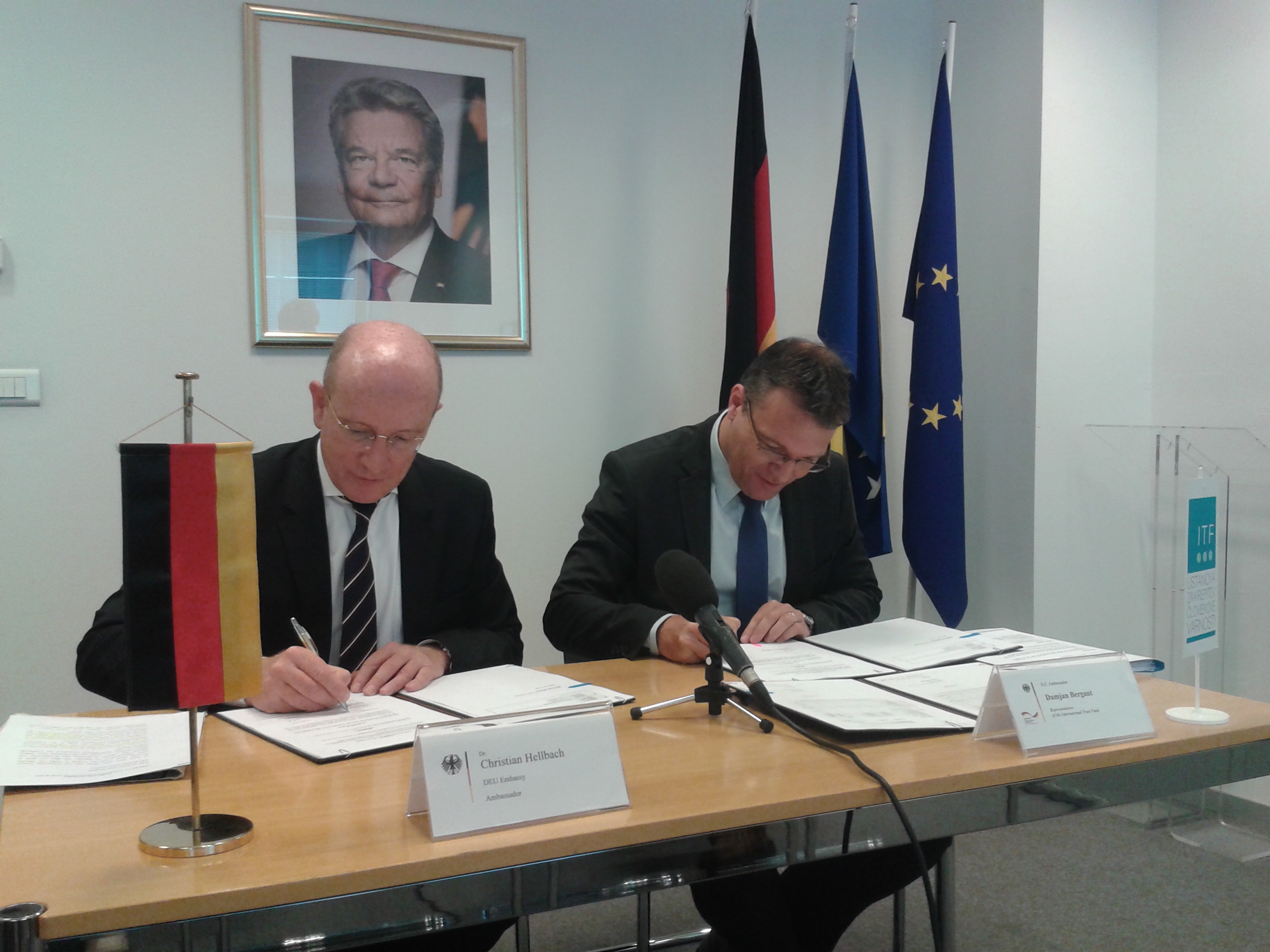 Sarajevo, 05 June 2015 – Dr. Christian Hellbach, Ambassador of the Federal Republic of Germany to Bosnia and Herzegovina, and Ambassador Damjan Bergant, ITF Enhancing Human Security Director, signed the first 2015 Agreement in the amount of 400,000.00 EUR. The donation is intended for continuation of FR Germany support to Bosnia and Herzegovina in mine action programme for 6 projects of clearance and technical survey in the Municipalities of Konjic, Maglaj and Lukavac. The total project size expands to 414,879 sq. meters, which will be implemented through ITF Enhancing Human Security.