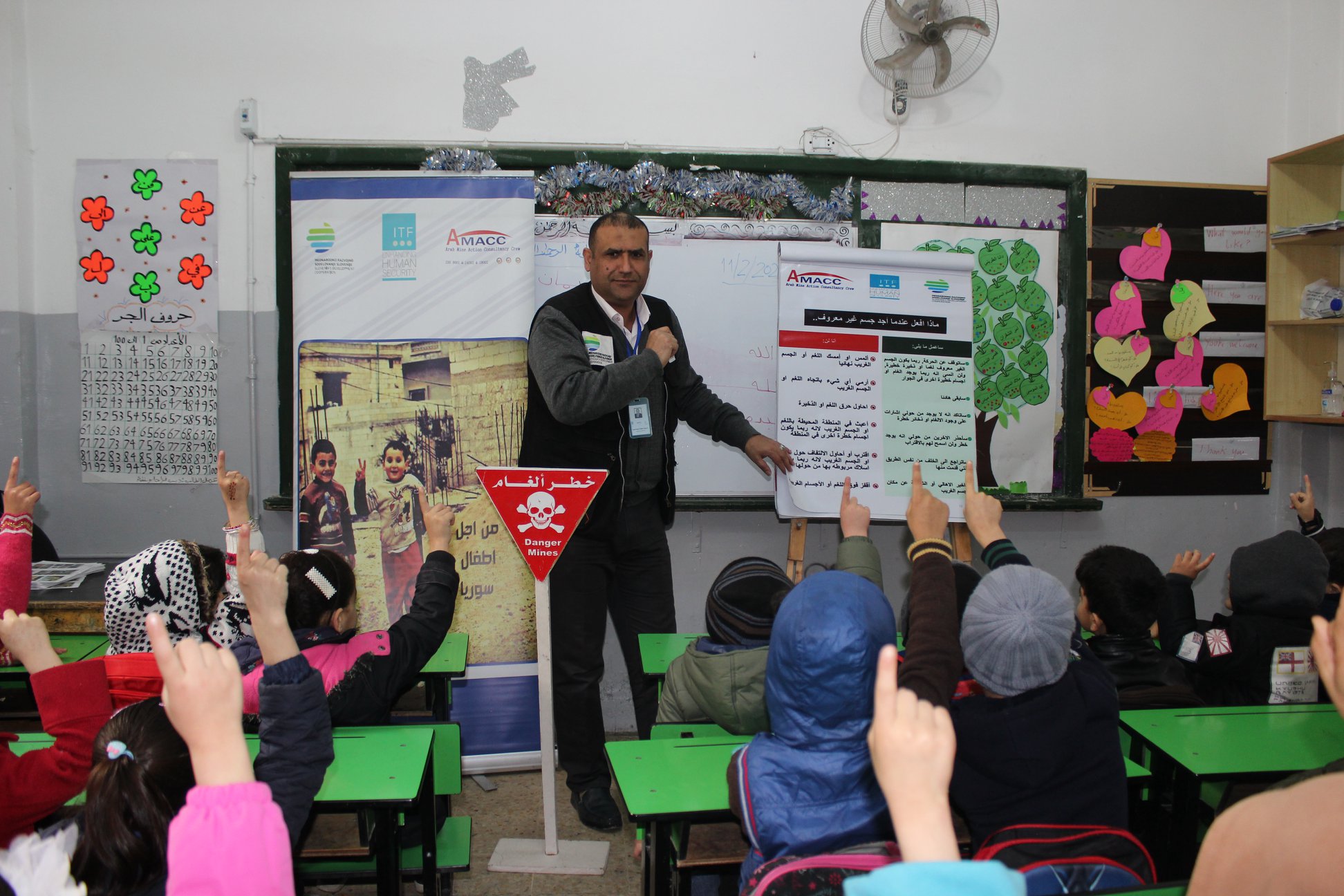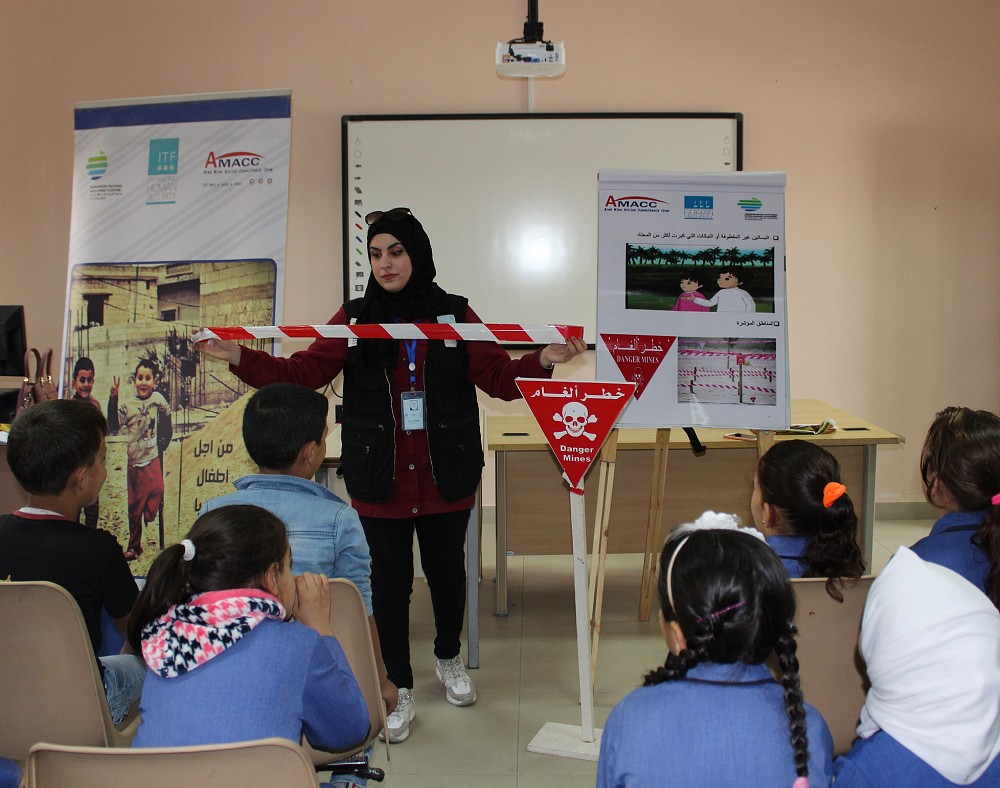 One of the best ways to prevent the risk of injury from mines and unexploded ordnance is by raising awareness and promoting safe behavior. With this goal in mind, ITF implemented a project in Jordan, in cooperation with Arab Mine Action Consultancy Crew and 21 other non-profit organizations, to provide Syrian refugees in the country with mine risk education that will allow them to stay safe once they return to their homes. A special focus was given to the most vulnerable, with many workshops designed specifically for children.