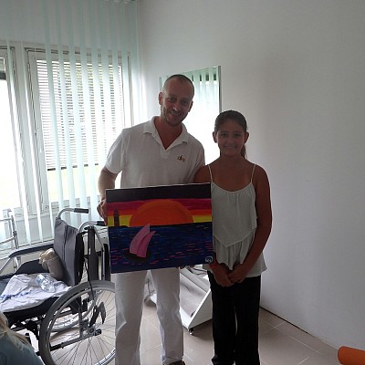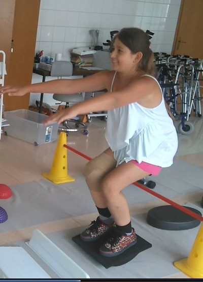 Upon arrival to Slovenia, the girl showed her ability to walk independently with a prosthesis without any issues; during the therapies she was able to climb the wall alone, ride a bicycle and even roller skate. She also attended occupational therapy, where her talent for drawing was discovered, among others, while in the afternoon she participated in different fun competitions with other children.