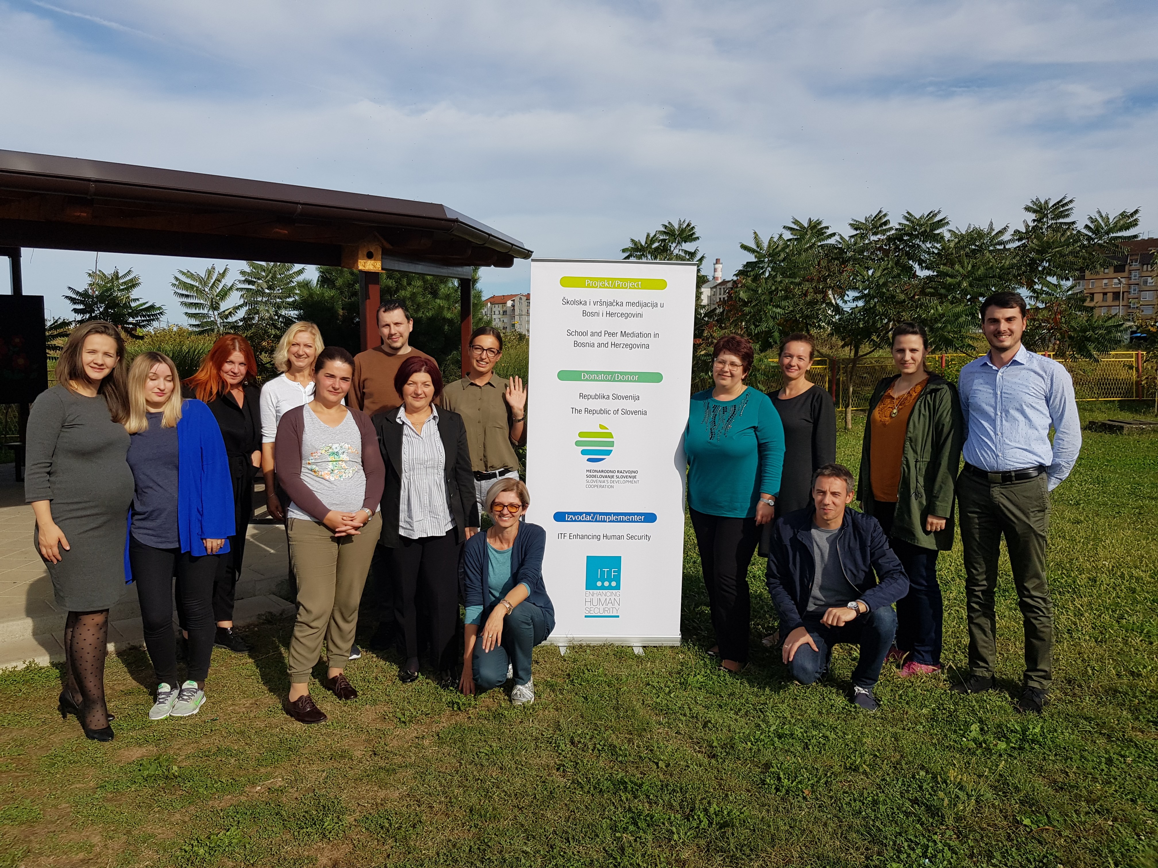In the last week of September 2019, three different trainings were implemented within the Project activities ‘School and Peer mediation in BIH’, financially supported by Ministry of Foreign Affairs of Republic of Slovenia (Slovenia’s Development Cooperation). ITF project manager joined the trainings for a monitoring visit in Gračanica and Derventa.