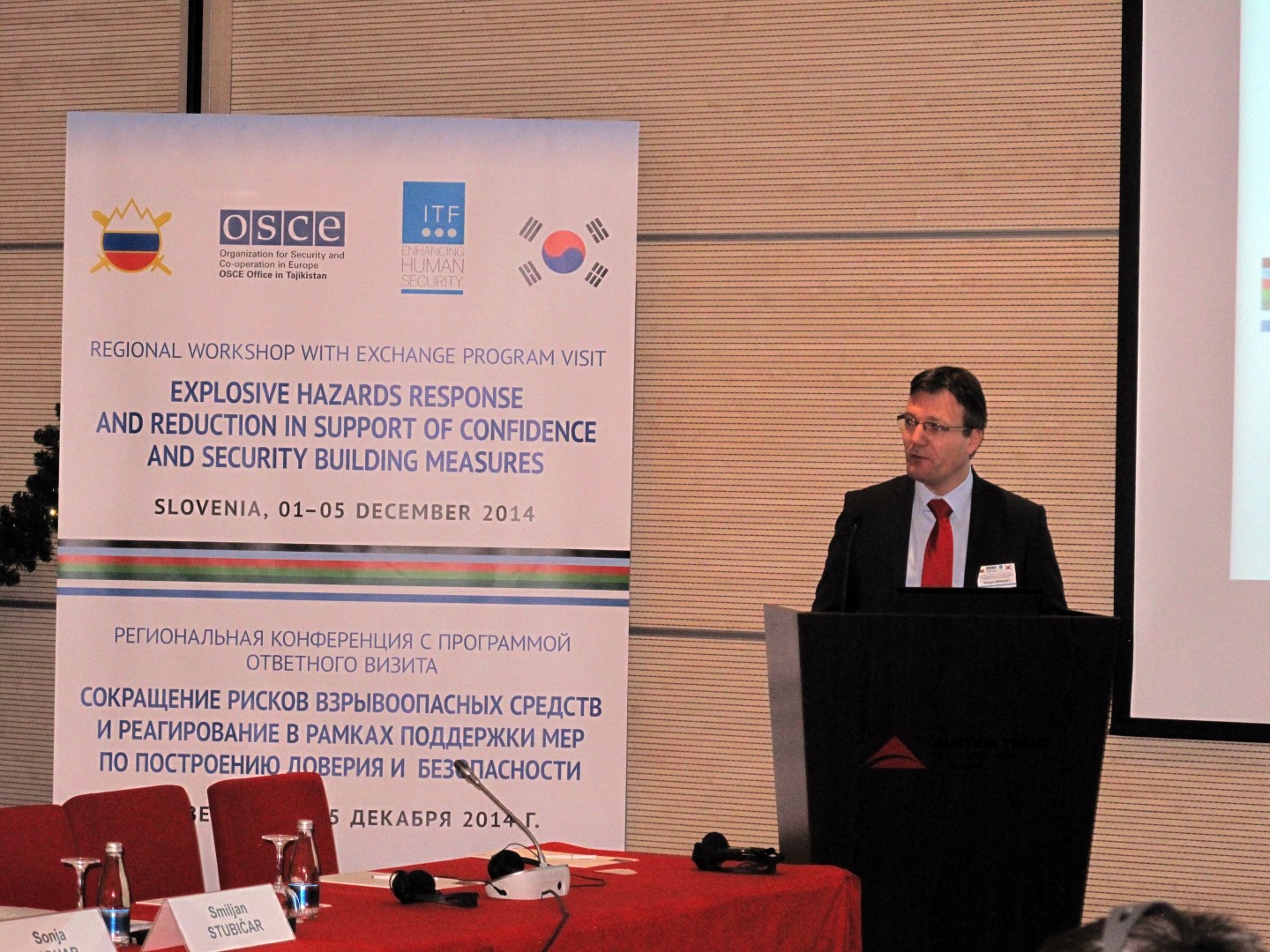 In period 01-05 December, ITF Enhancing Human Security has in close cooperation with Slovenian Armed Forces organized regional workshop with exchange program visit »Explosive Hazards Response and Reduction in Support of Confidence and Security Building Measures«. The activity falls within regional program which aims to foster technical cooperation on Explosive Hazards among OSCE Central Asia participating states including Afghanistan which was initied by OSCE Office in Tajikistan (OSCE OiT) in 2009. Financial resources for implementation of annual workshop that was held in the Republic of Slovenia were secured by OSCE OiT and Republic of Korea.