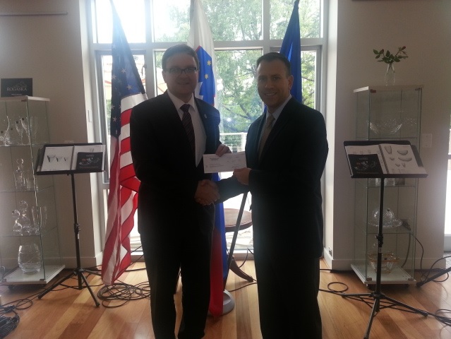 Handover of 5.000,00 USD check to ITF by Matt Hulsey, President of Sterling International Group, LLC. The funds were raised by Sterling during the Lend Your Leg 2013 campaign. Thank you!