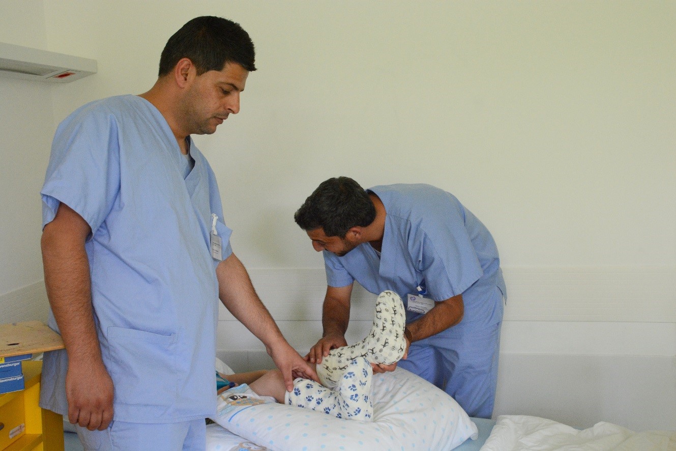 On 07 May 2018, Ahmed and Mohammed, experts from Bethlehem, arrived to the University Rehabilitation Institute of the Republic of Slovenia (URI – Soča), where they are receiving extensive training in rehabilitation medicine with emphasis on rehabilitation care. 100 hours of training in 20 days have been specifically designed for the two medical experts, with an important aspect of their training being to familiarize them with a team approach to rehabilitation. The aim of the project is building sustainability of national medical capacities through knowledge transfer. It will enable experts to apply the gained experience to their profession and practice back in Bethlehem. Training of medical experts will be finished on 08 June 2018.