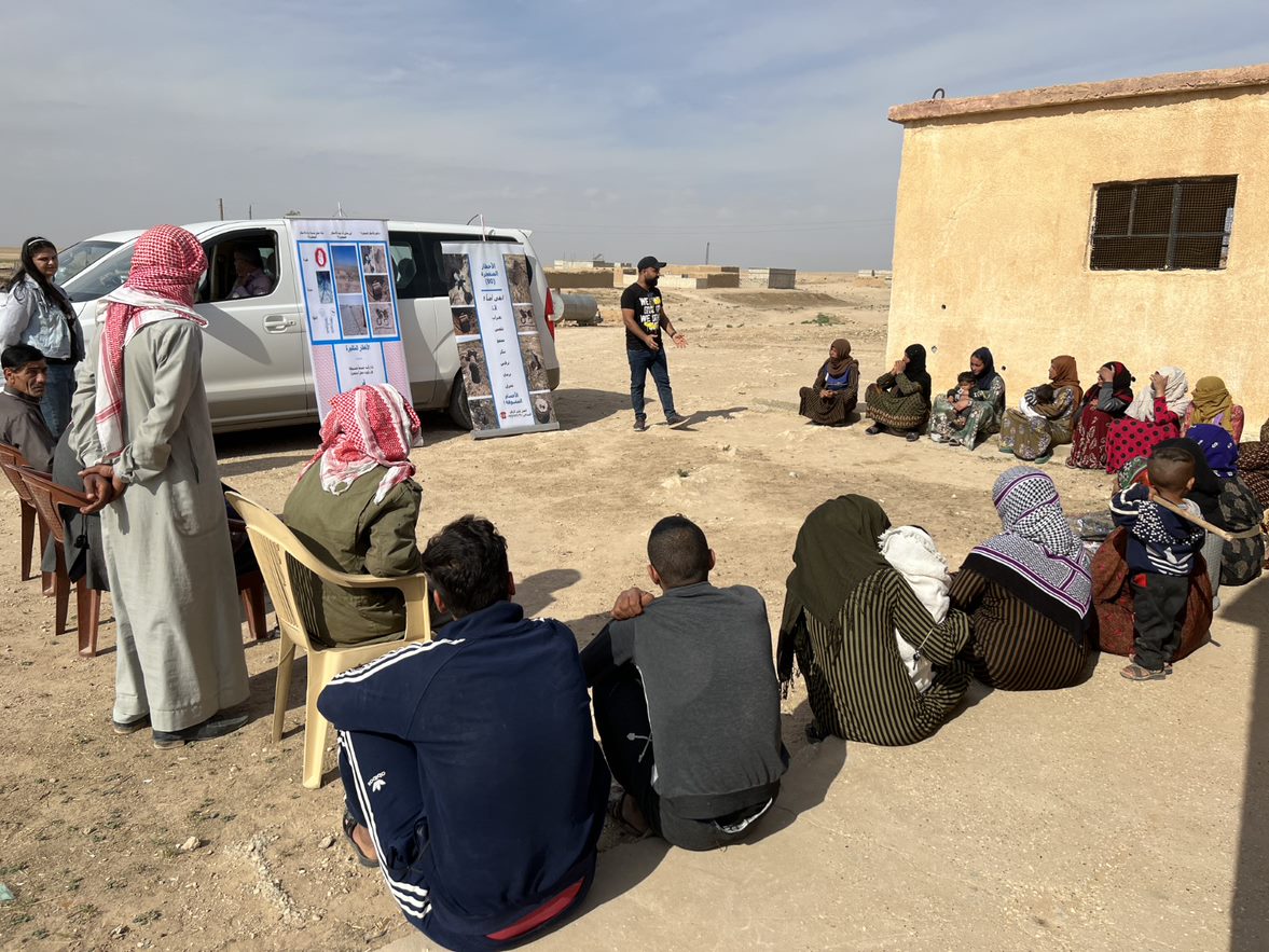 Despite ongoing clearance efforts, there are areas in Northeast Syria where armed clashes are ongoing and where contamination remains a real threat. It is therefore key to address both adults and children from communities living in the vicinity of the contaminated areas and those who may one day be returning to contaminated areas through explosive ordnance risk education (EORE). Children and adults are typically provided with separate sessions, specifically tailored to the age, attention span, and other specifics of the listeners. To date, around 15,000 people have been provided with safety messages and life-saving information on safe behavior.